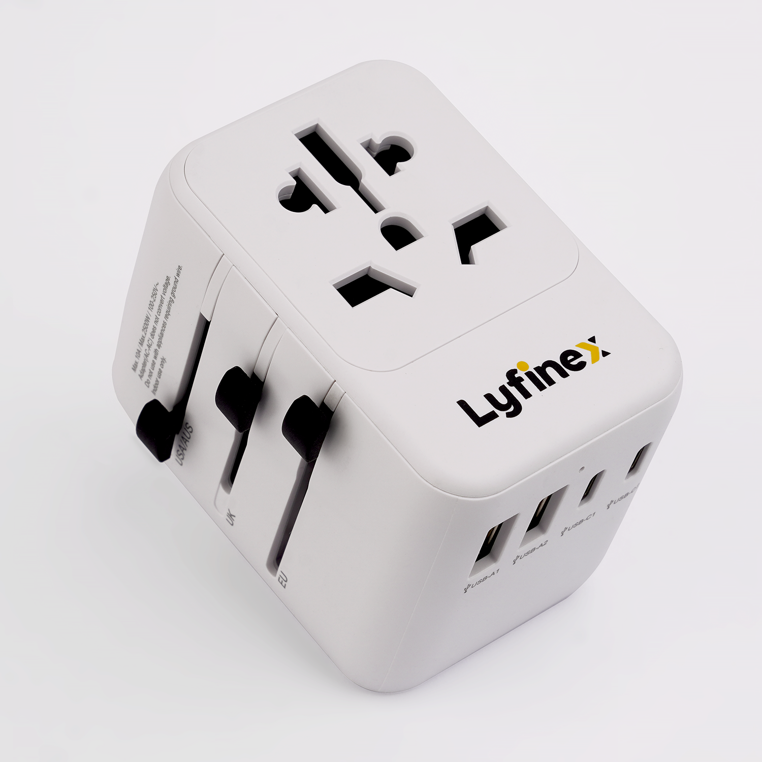 Stay connected anywhere in the world with Lyfinex – the ultimate travel adapter combining safety, speed, and style.
